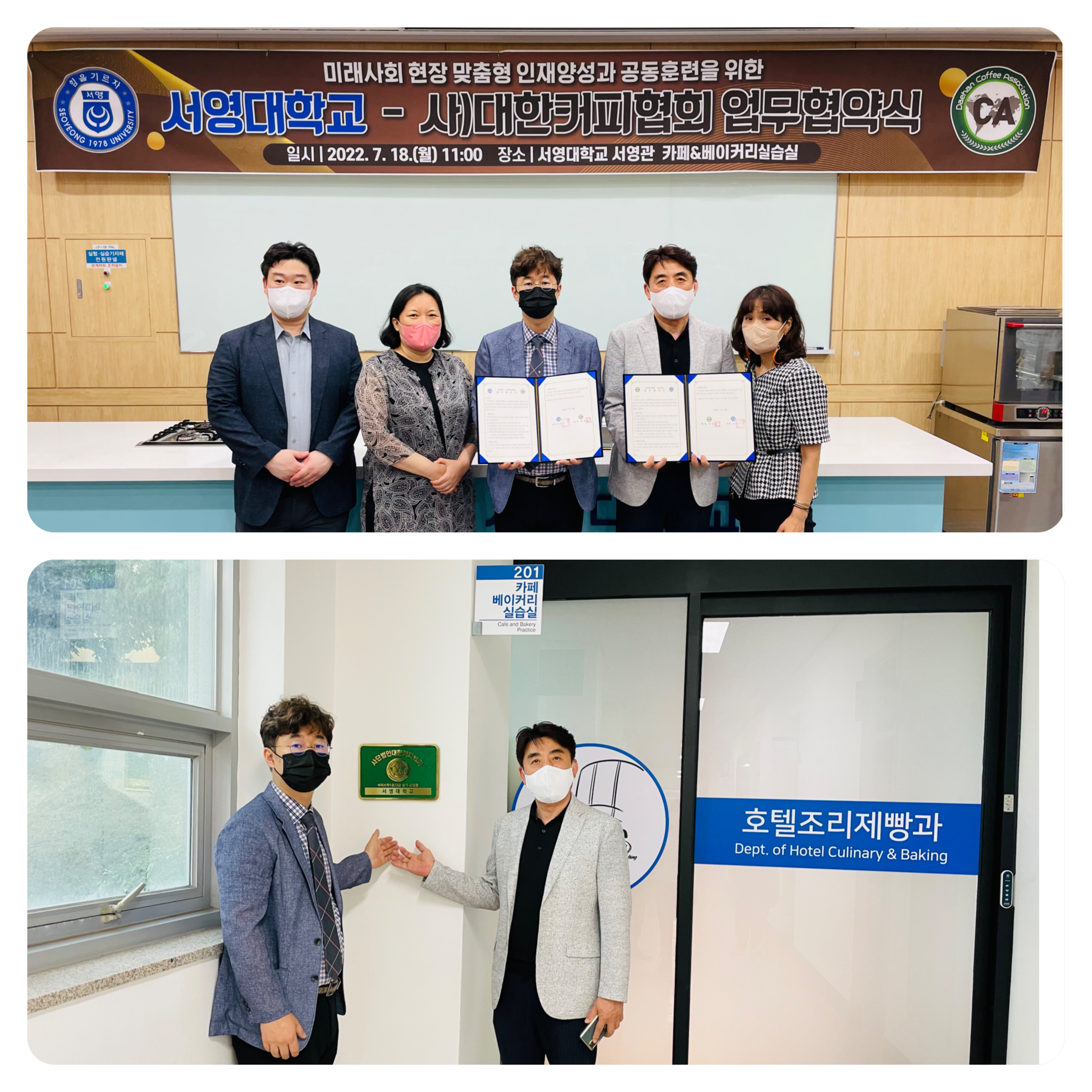 ○ 금일 호텔조리제빵과(학과장 권기완)와 사)대한커피협회가 업무협약식을 진행하였습니다.