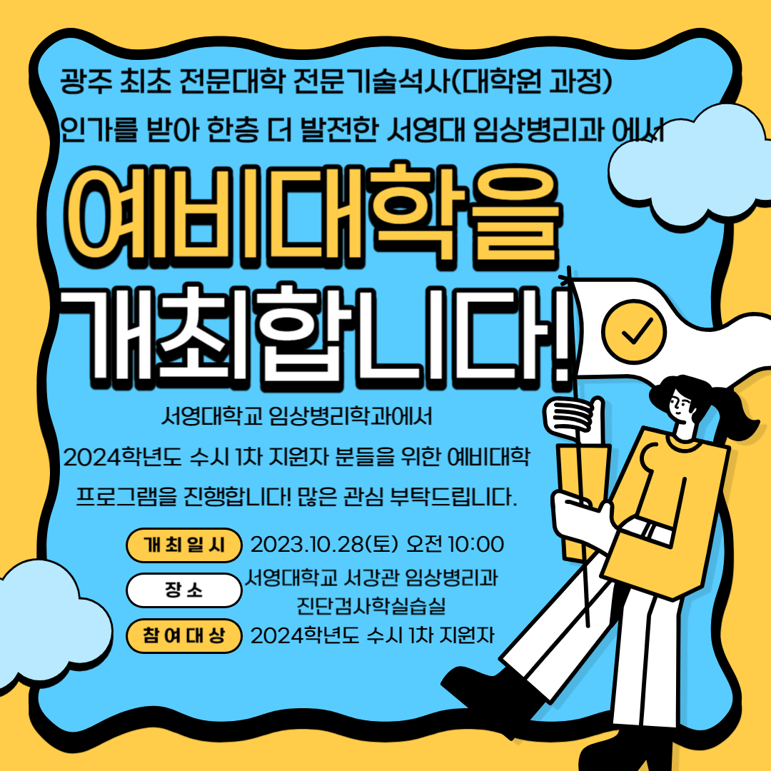 서영대학교 임상병리학과에서 2024학년도 수시 1차 지원자 분들을 위한 예비대학 프로그램을 진행합니다!