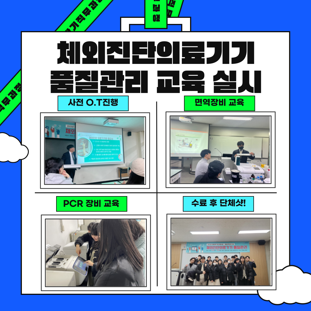 본 교육은 임상병리사의 임상 실무 능력을 향상하고, 현장에서 체외진단의료기기 사용법 및 평가의 질을 향상할 수 있는 계기를 마련하였으며, 10월 10일~12월 04일 8주간 15명의 재학생들을 대상으로 서영대학교에서 교육이수증을 주었습니다.  더불어 2024년부터 광주,호남지역 최초로 운영되는 서영대학교 대학원 전문기술석사 교과운영되면서 단기직무과정-전문학사-전공심화-전문기술석사를 연계하여 고숙련 AI기반 스마트진단검사분석 전문가를 양성할 계획입니다.!