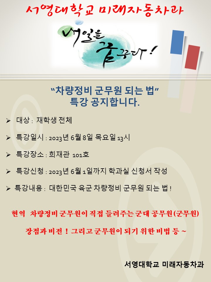 상기 내용에 따라 특강 희망자는 학과실에서 신청바랍니다.
