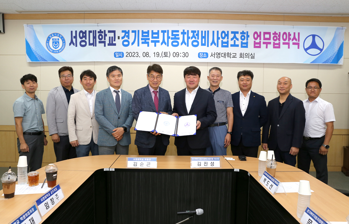 서영대학교 미래자동차과와 경기도 북부 자동차정비사업조합과 산학 MOU를 체결 하고, 조합원들의 자동차정비 자격증 취득을 위해 자동차정비기능사 필기 및 실기 특강도 같이 진행 하였습니다. 신기술로 숙력된 우수한 졸업생을 배출하여 자동차정비 산업역군의 초석을 다질 수 있으며, 경기도 북부 자동차정비사업조합 내 인력을 필요로 하는 120 여개 산업체는 신규 고용 창출과 우수 인력 채용을 통한 경쟁력 강화를 얻을 수 있는 뜻 깊은 협약식을 체결 하였습니다. 이외에도 상호 인적 자원 공유, 기자재 지원 및 신기술 공유, 자격증 교육 등의 산학협력을 지속적으로 펼쳐가기로 하였습니다.