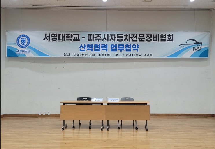 3월 30일 서영대학교 미래자동차과와 파주시 자동차전문정비협회는  산학협력 업무를 체결하고  상호간 "협력 관계"를 구축하였습니다.