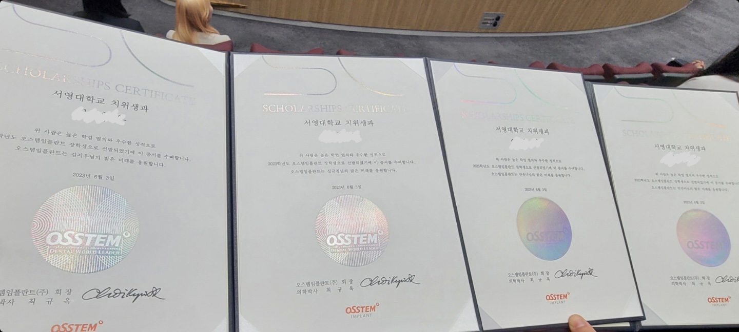 대상: 오스템 임플란트 장학생 4명