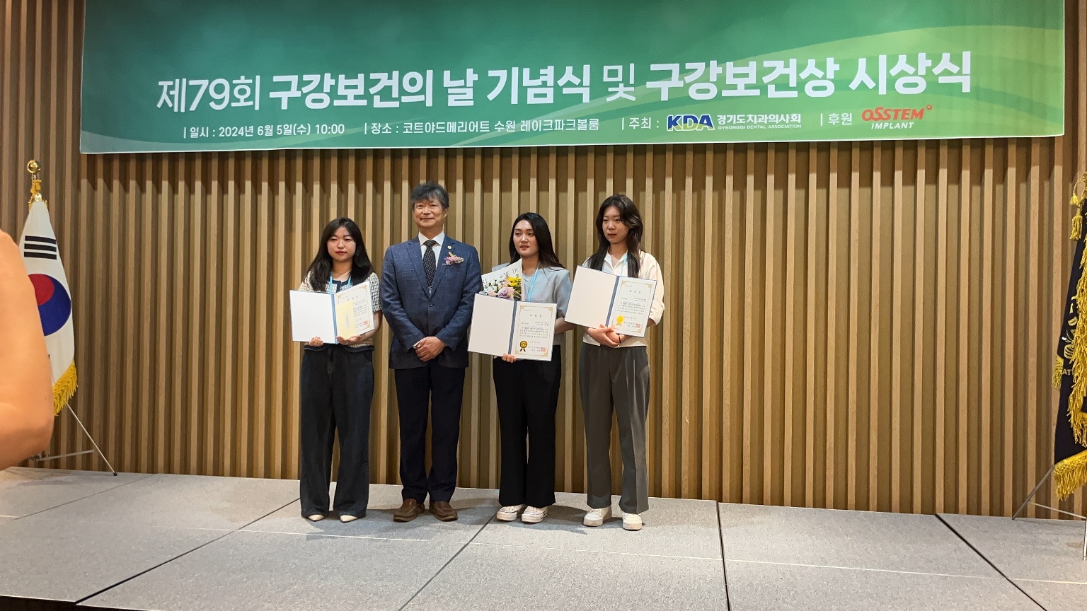 제 79회 구강보건의 날 기념식 및 구강보건상 시상식에서 2학년 송*서, 박*해, 김*주 학생이