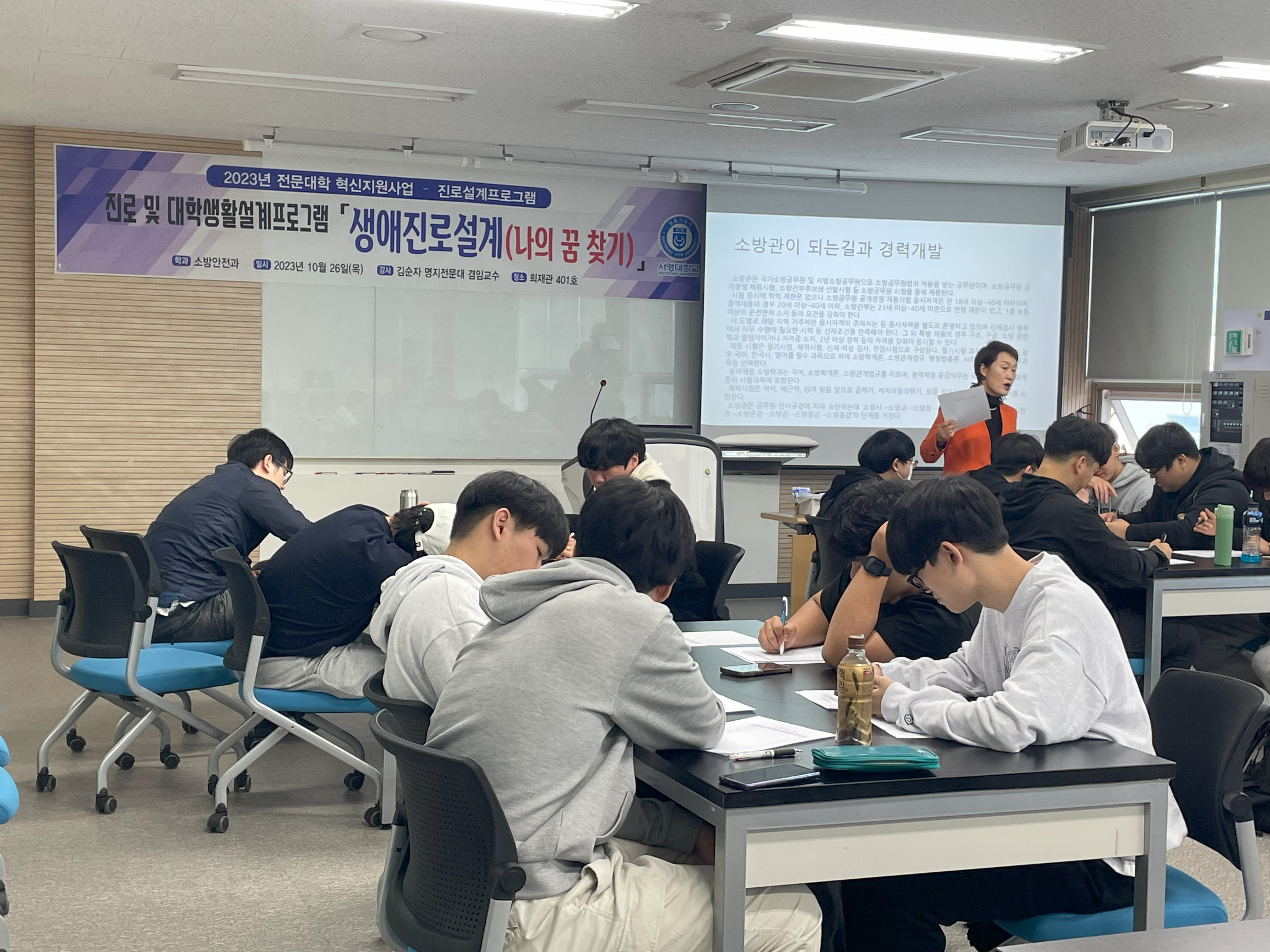 소방안전과 1학년 대생 소방인의 미래를 디자인 할 수 있는 꿈 찾기 특강을 실시 했어요 ~~