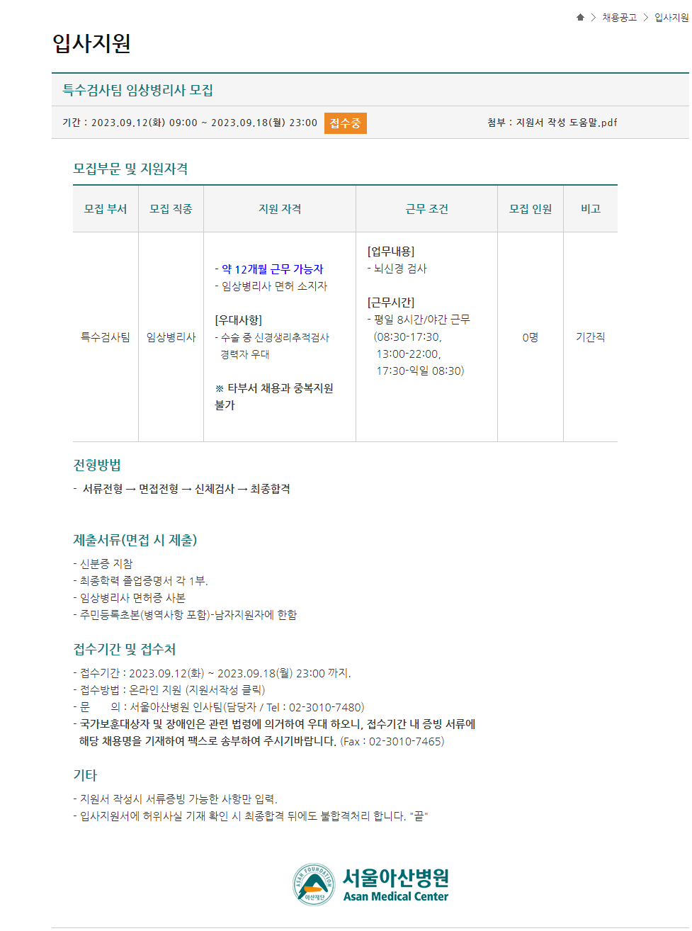입사 지원: 입사지원 | 채용공고 | 서울아산병원 (amc.seoul.kr)
