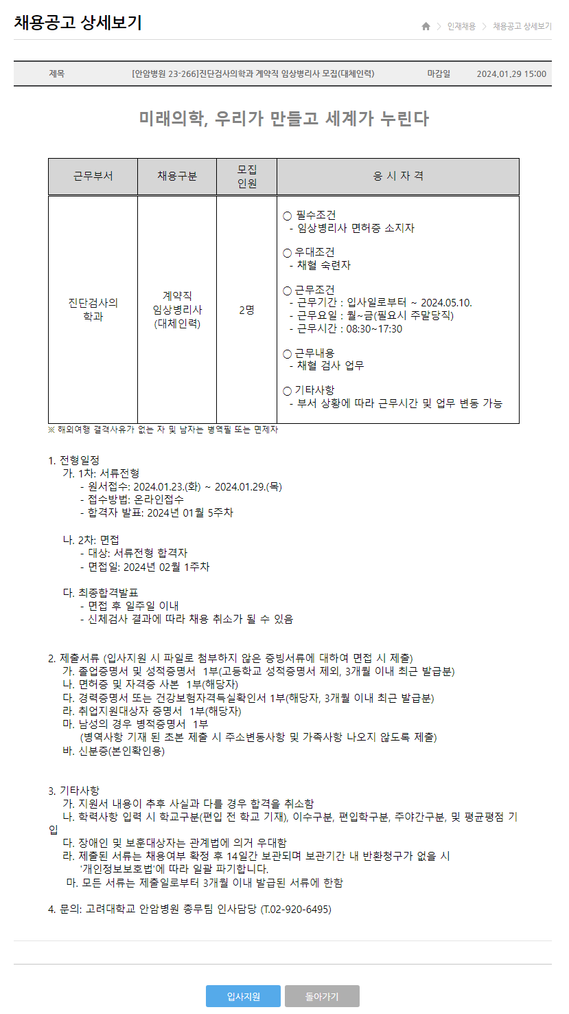 입사 지원: 고려대학교의료원 온라인 채용시스템 (kumc.or.kr)