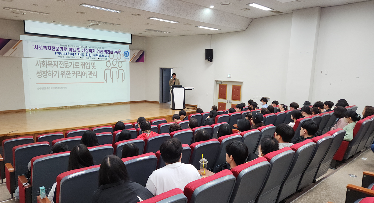 실제 사회복지 현장에서 활동 중인 전문가의 생생한 조언과 노하우를 들을 수 있었던 이번 특강은, 학생들에게 실질적인 진로 설계와 자기 준비를 점검할 수 있는 뜻깊은 시간이 되었습니다. 앞으로도 사회복지행정과에서는 학생 여러분의 진로 탐색과 역량 강화를 위한 다양한 행사와 프로그램을 지속적으로 마련할 예정이오니, 많은 관심과 참여 부탁드립니다.