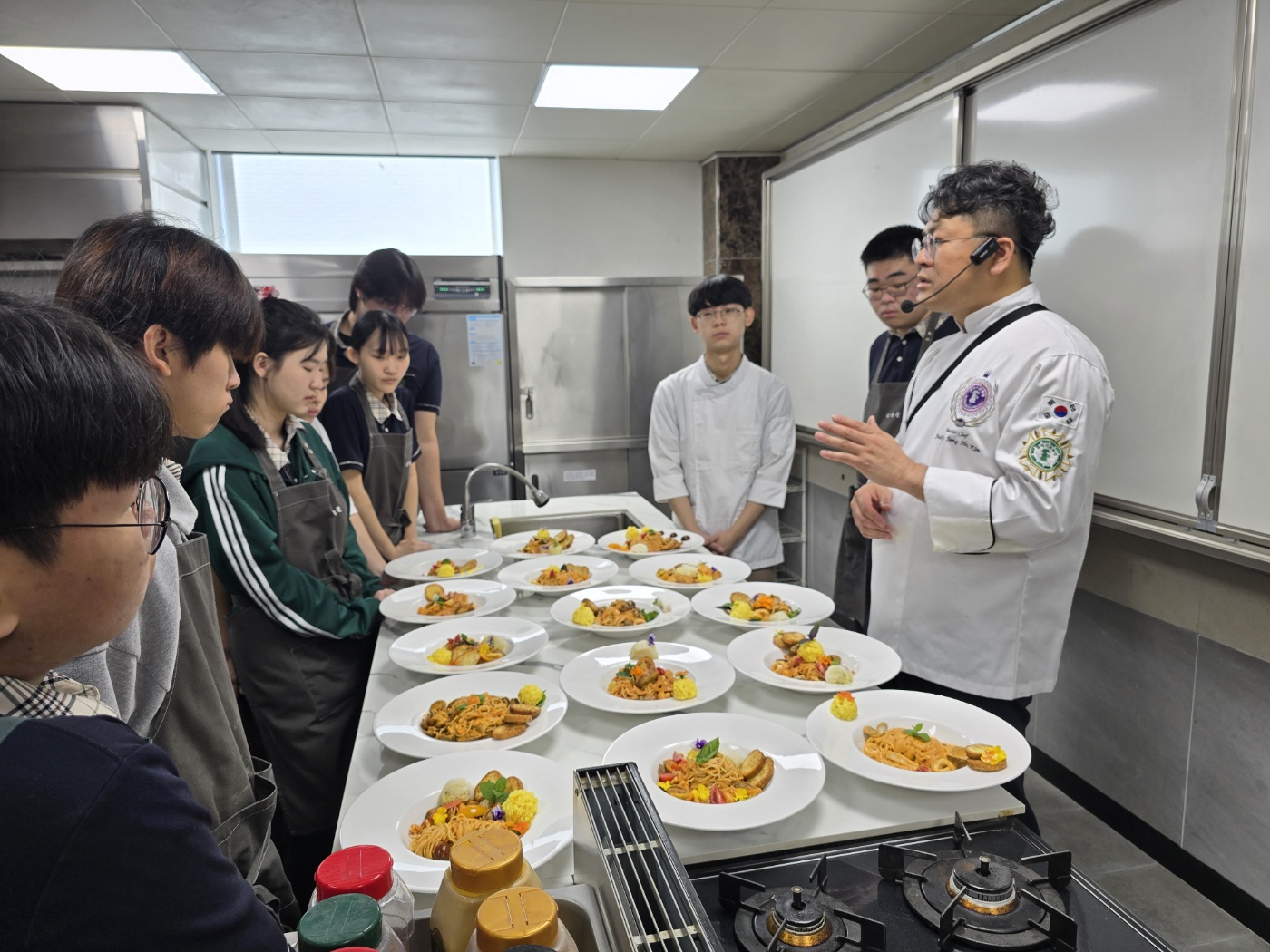 0. 본 행사는 우리대학과 문산제일고등학교간 상호협력업무협약 체결 이후 전공학과 고등학생들의 연계학과 학과탐방과 실습 체험을 통해 자신의 적성과 진로탐색을 돕기 위해 마련된 프로그램이다. 프로그램에 참여한 문산제일고 학생들은 학과탐방 및 학과소개 프로그램과 더불어 김장호교수가 진행하는 조리실습 특강 프로그램에 참여하였다.