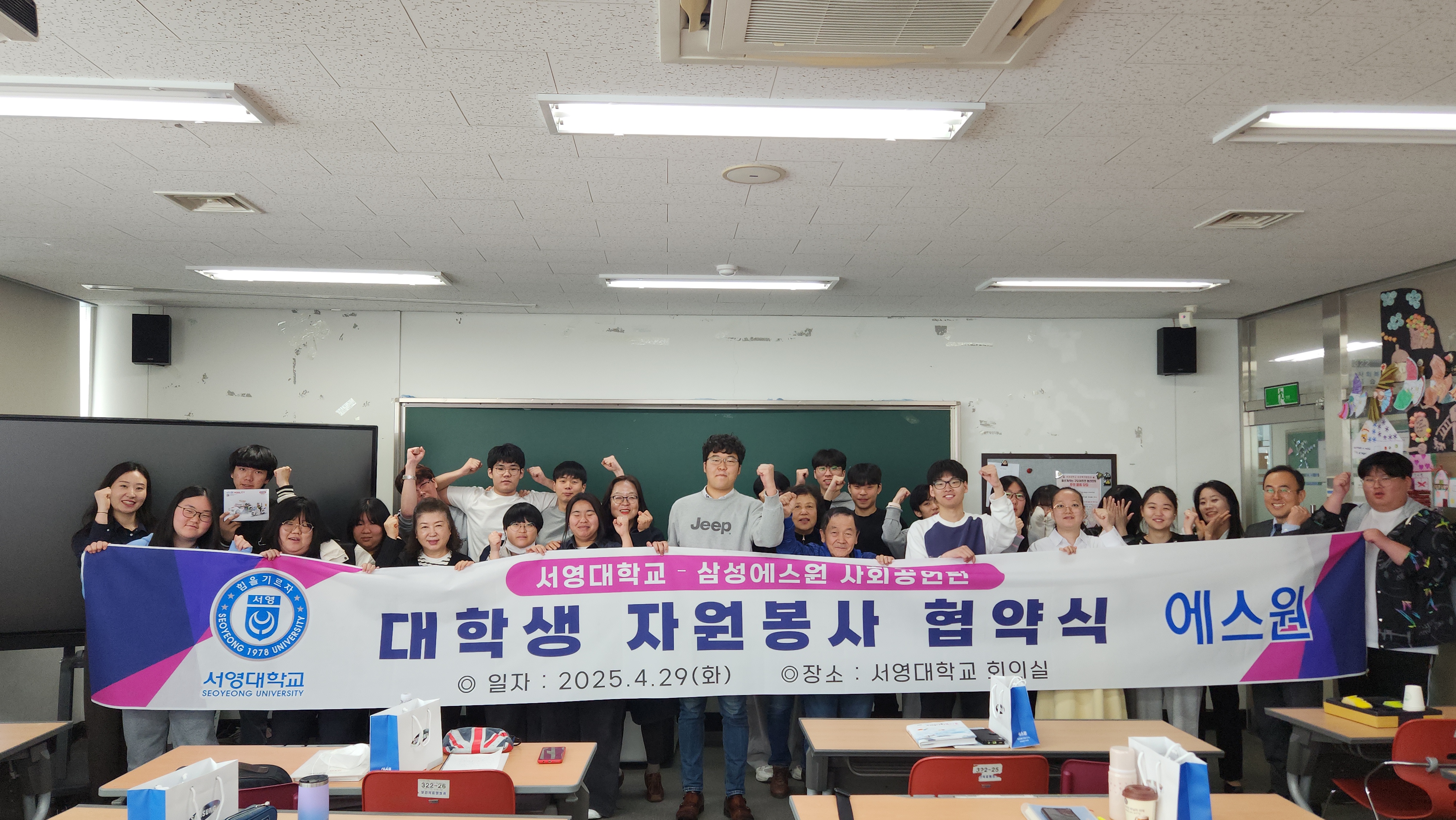 O. 우리대학(총장 김정수) 사회복지행정과(학과장 김효선)는 사회복지전공 학생들의 전공역량 강화를 위하여 삼성에스원 사회공헌단과의 대학생 자원봉사 협약식을 진행하였다. 서영대학교 회의실에서 진행된 협약식은 사회복지행정과 학과장 김효선교수, 권지혜 교수, 김민철 교수 등 대학 관계자와 삼성에스원 사회공헌단 신영빈 팀장 외 기관 관계자가 참석하였다. 서영대학교-삼성에스원 사회공헌단 대학생 자원봉사 업무협약식은 업무협약 체결, 대학생 자원봉사 발대식 등의 순서로 진행되었다.