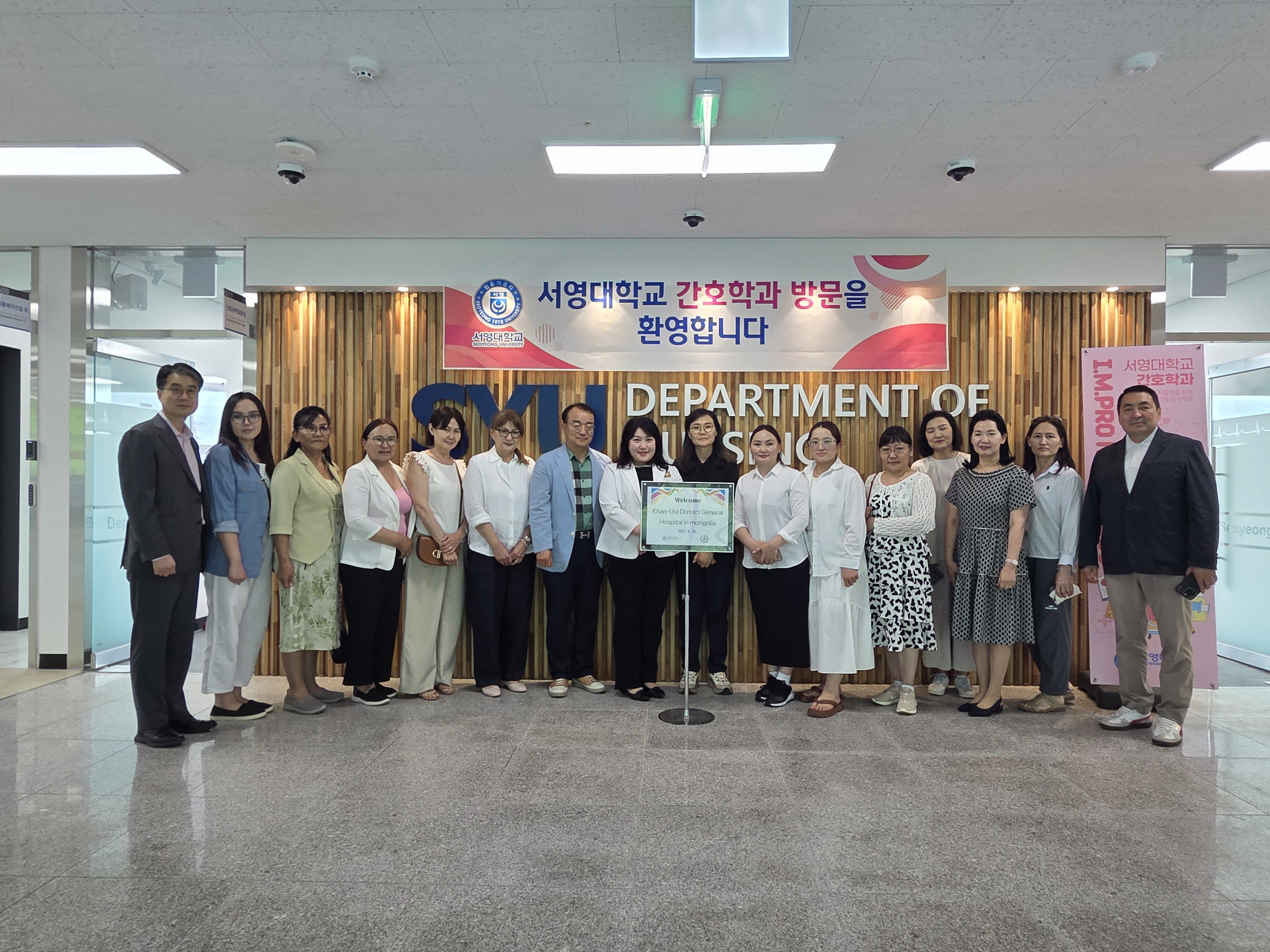 ○ 서영대학교(총장 김정수) 간호학과(학과장 이연희)는 6월 19일(목) 몽골 Khan-Uul District General Hospital에서 의료진 10명을 대상으로 학교 현장 견학 프로그램을 진행하였다. 이번 학교 현장 탐방에는 서영대학교 장철인 입학홍보처장, 이연희 간호학과 학과장, 홍희정 교수, 구소연 교수와 몽골 Khan-Uul District General Hospital 의료진 외 인본병원 관계자 2명이 참석하였다.